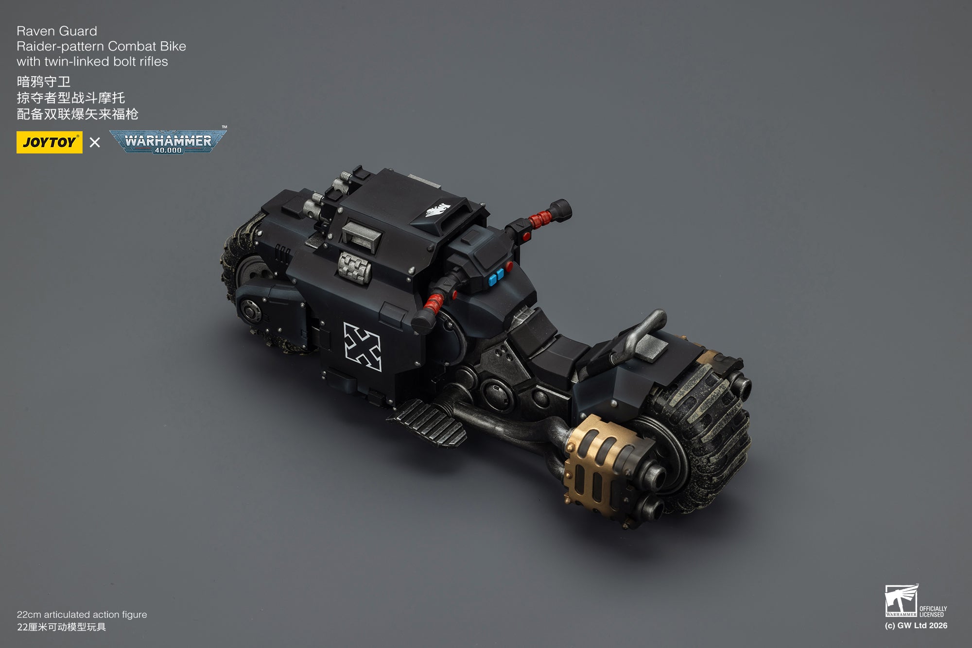 Product Description: Warhammer 40K Blood Angels Space Wolves Raven Guard Raider-pattern Combat Bike with twin-linked bolt rifles
