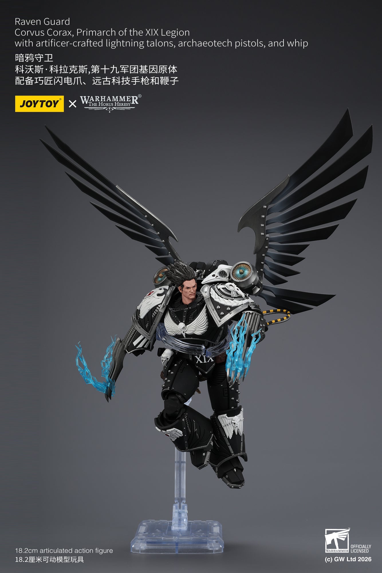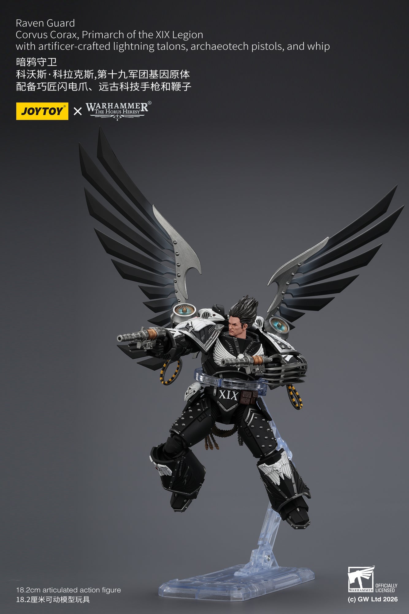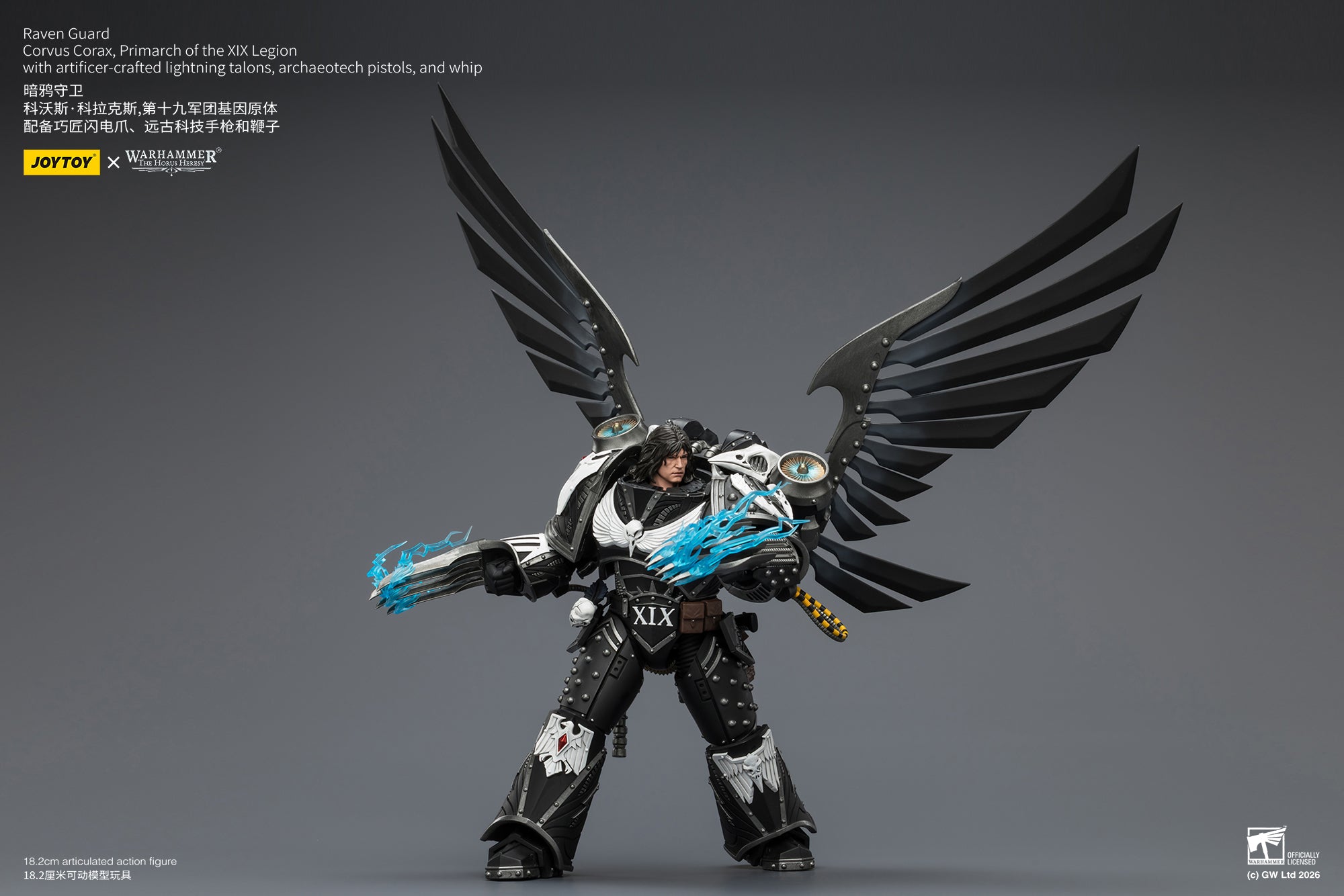 [Pre-Order]1/18 JOYTOY Action Figure Warhammer The Horus Heresy Raven Guard Corvus Corax, Primarch of the XIX Legion with artificer-crafted lightning talons, archaeotech pistols, and whip